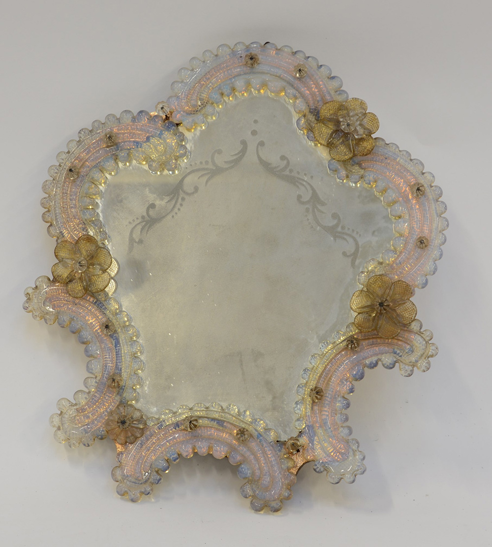 Manifattura di Murano. Piccola specchiera a muro di forma sagomata (cm 36x31)