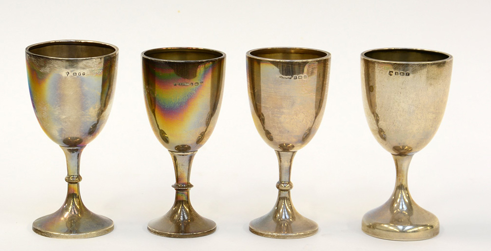 Gruppo di quattro calici in argento. Marchi inglesi, sec. XX (gr 200 ca)
