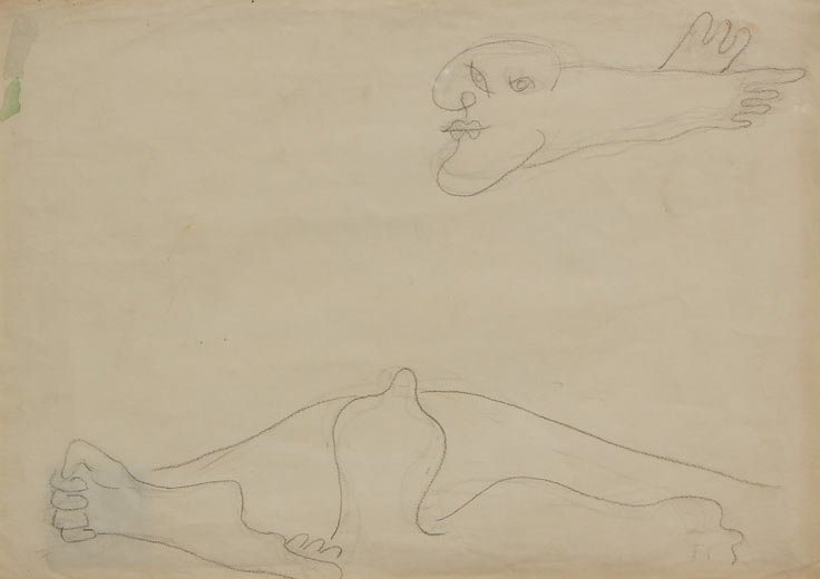 Osvaldo LICINI Monte Vidon Corrado 1894-1958 Angelo ribelle grafite su carta graphite on paper cm 23.5×32 Certificato di autenticità a cura di Caterina Hellstrom, in data Ascoli Piceno, 3-10-1988 Certificate by Caterina Hellstrom, dated Ascoli Piceno, 3-10-1988 Timbro della Galleria Sant’Erasmo, Milano (al retro) Stamp of the Galleria Sant’Erasmo, Milan (on the reverse)