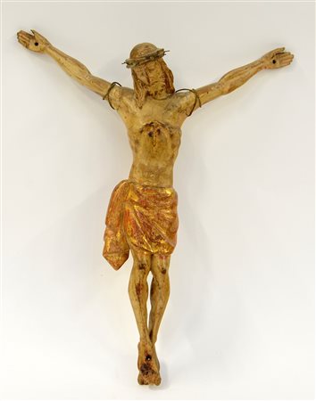 Arte del sec. XIX. Cristo crocifisso scultura in legno laccato e dorato (h. cm 47)