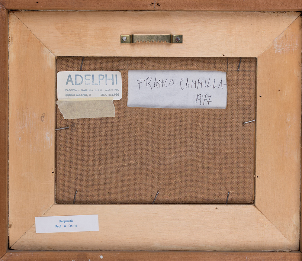 Etichetta della Galleria d'Arte Adelphi (PD) al retro
