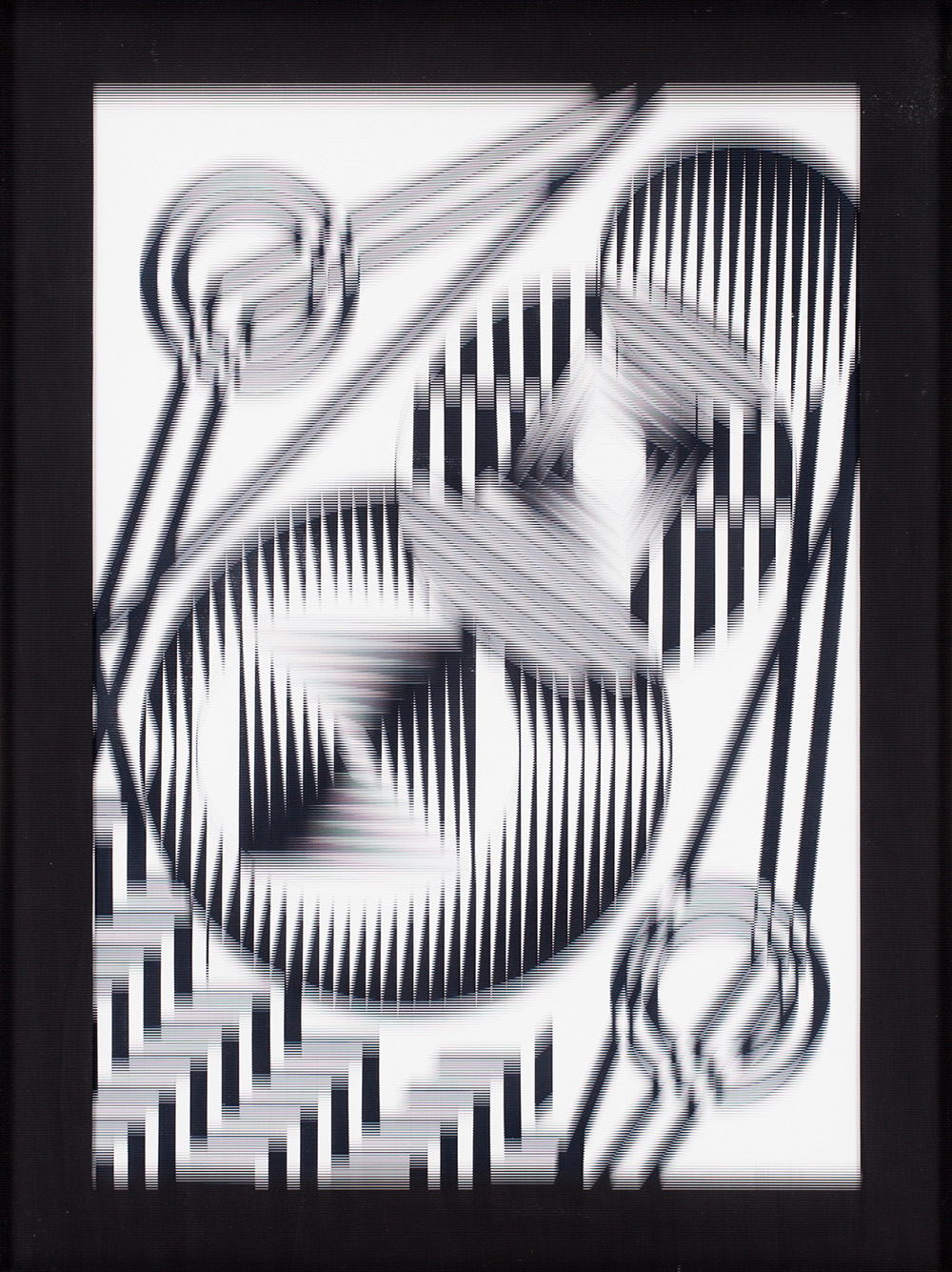 Tecnica mista su cartoncino entro plexiglass zigrinato a linee orizzontali