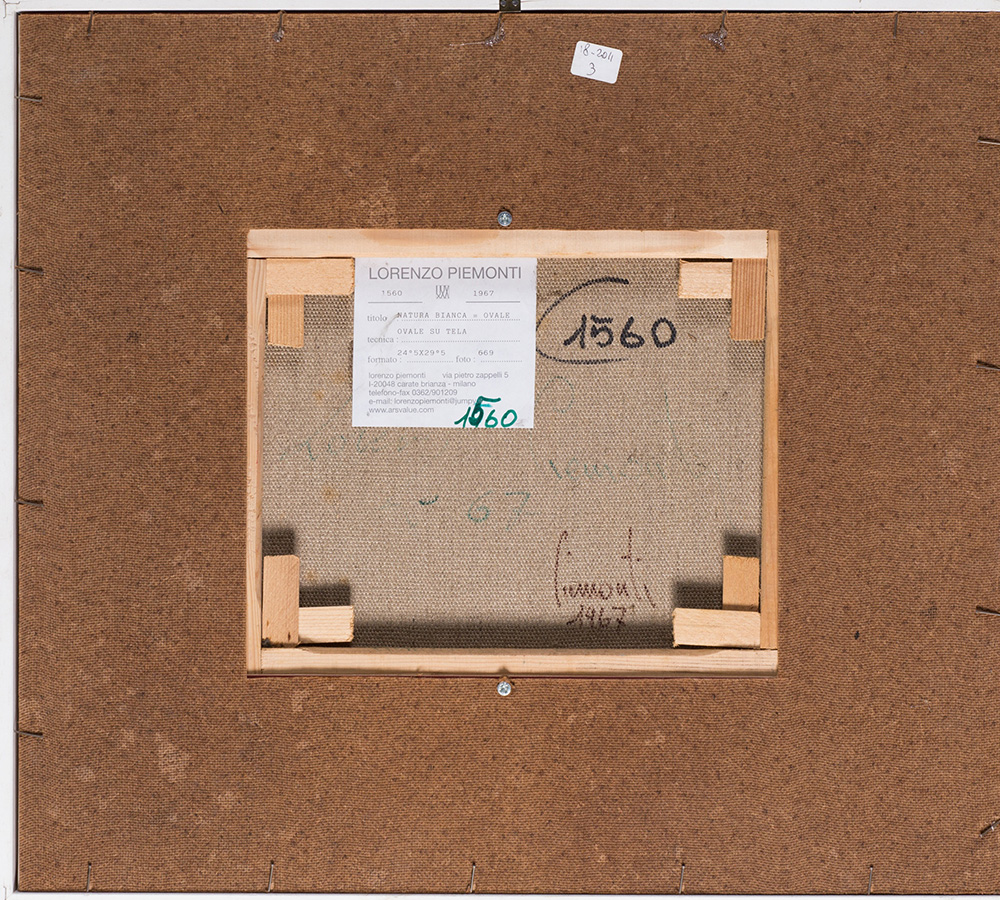 LORENZO PIEMONTI (1935-2015) Natura bianca = ovale, 1967 Acrilici e...