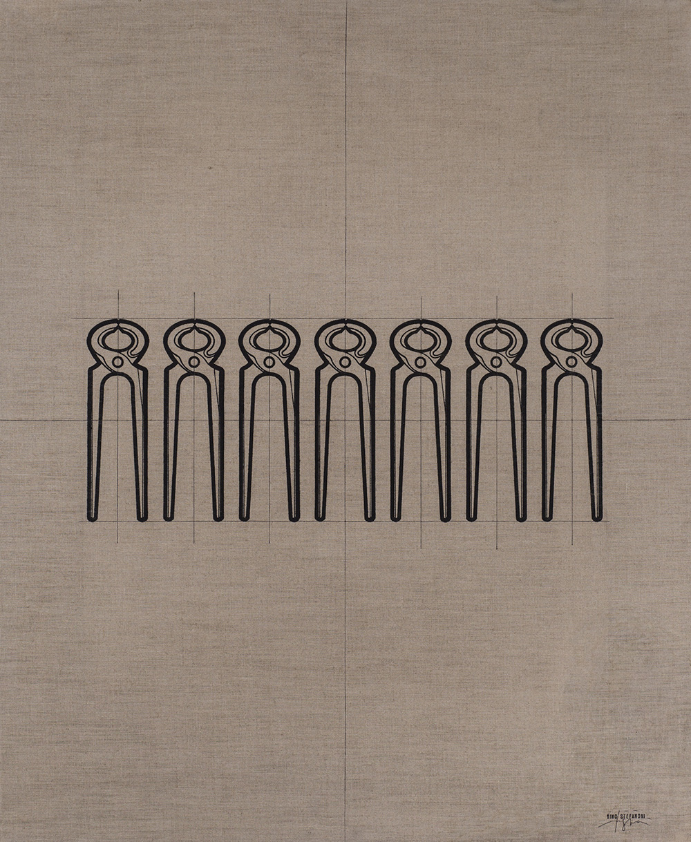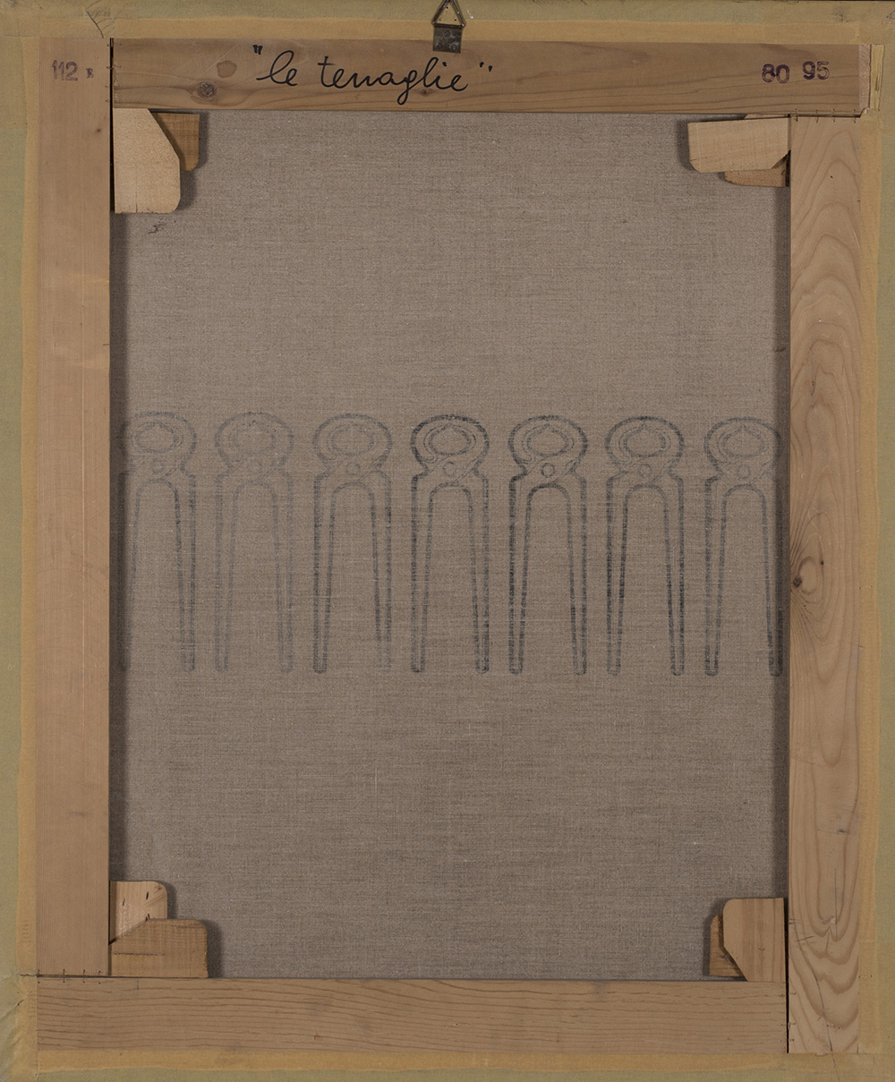 TINO STEFANONI (1937) Le tenaglie N.112e Tecnica mista su tela cm 95x80 Firma...