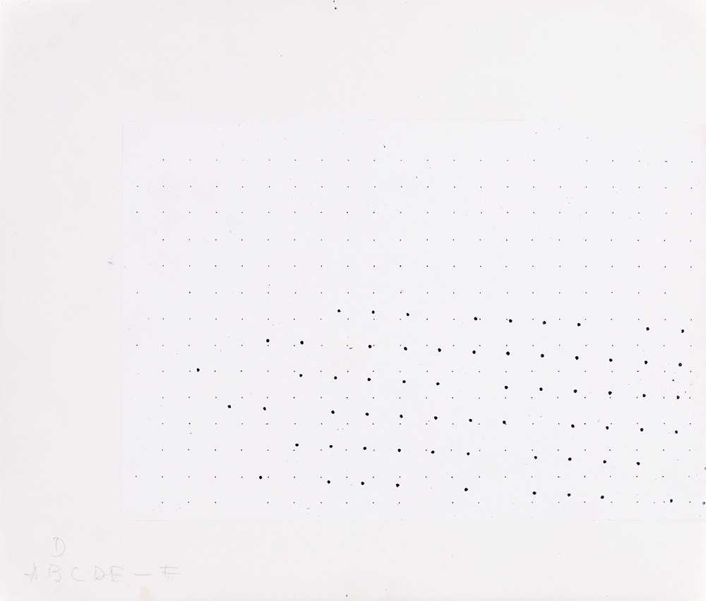 Opera concepita come prova per la realizzazione della serigrafia "Marco Gastini A B C D E - F" edita nel 1976 da Jabik e Colophon