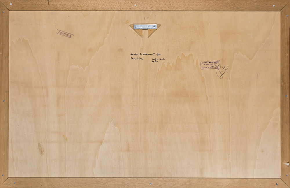 Timbri della Galleria d'Arte San Biagio (MT) con relativo numero d'inventario e della Galleria Valente Arte Contemporanea (SV)