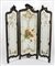 Paravento in legno scolpito a 3 ante a vetri dipinti a motivi floreali. Fine XIX secolo. cm. 152x54.