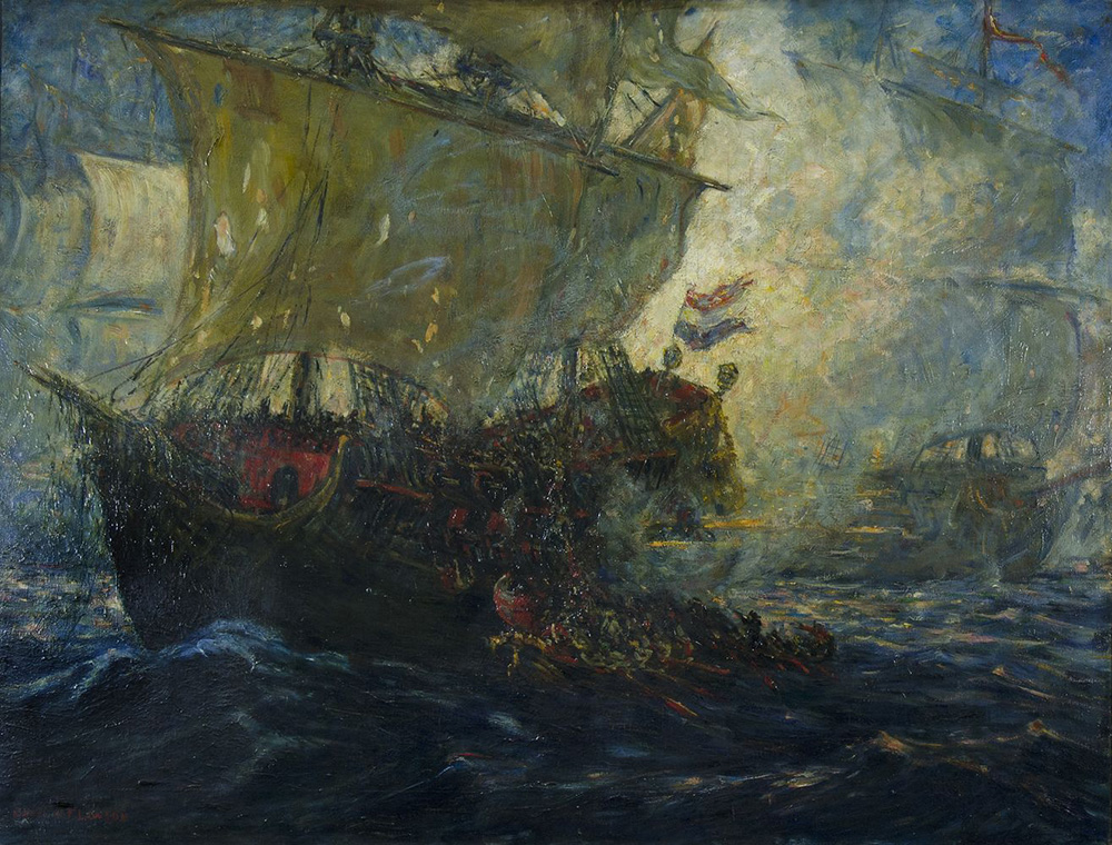 Cecil C.P. Lawson "Ammutinamento" cm. 90x115 - olio su tela Firmato b. a s.