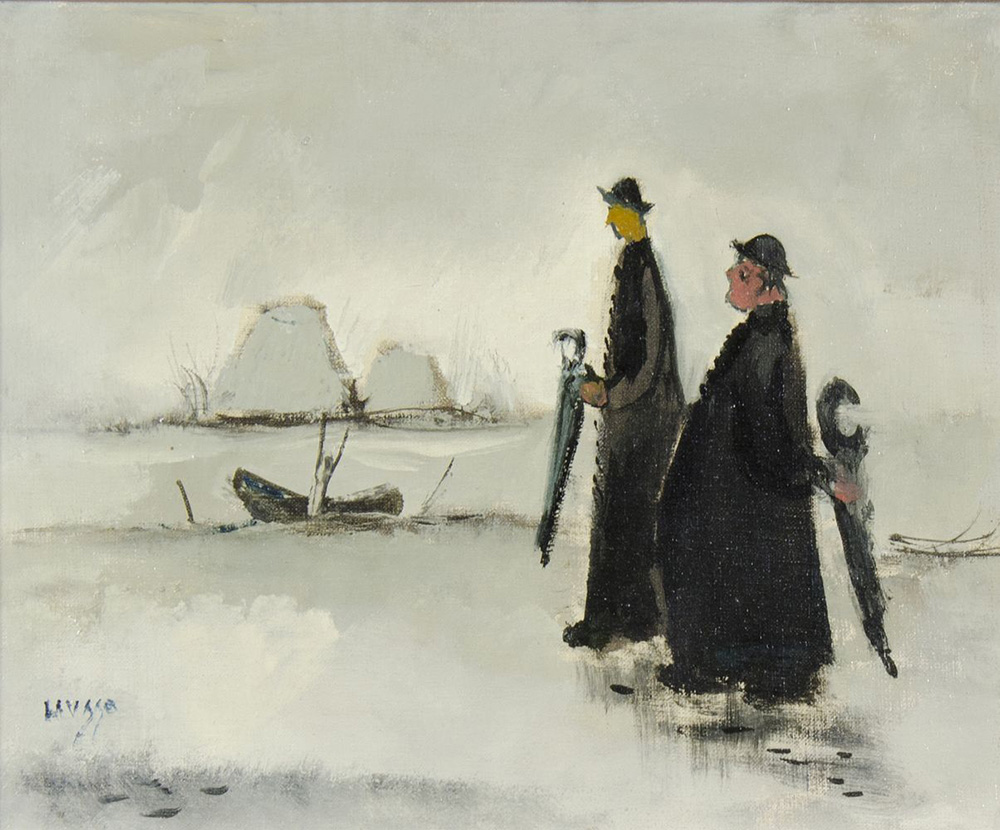 Bepi Liusso 1911-1993 "Torna la pioggia" cm. 24x30 - olio su cartone telato Firmato b. a d. Al retro titolo e firma dell'Artista con indirizzo.