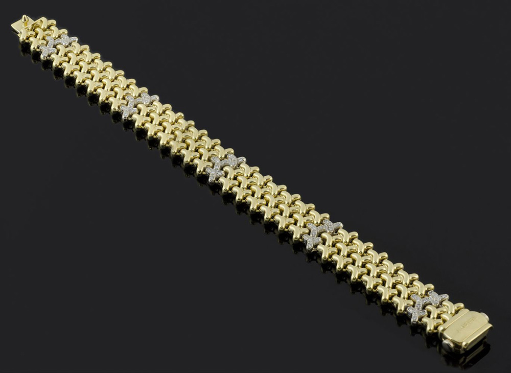 Lotto 38 | Bracciale semirigido in oro giallo e diamanti per ca ct 0,60. Firmato Chimento.