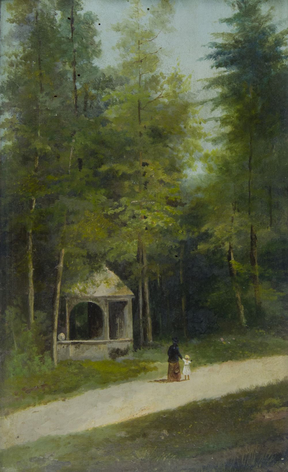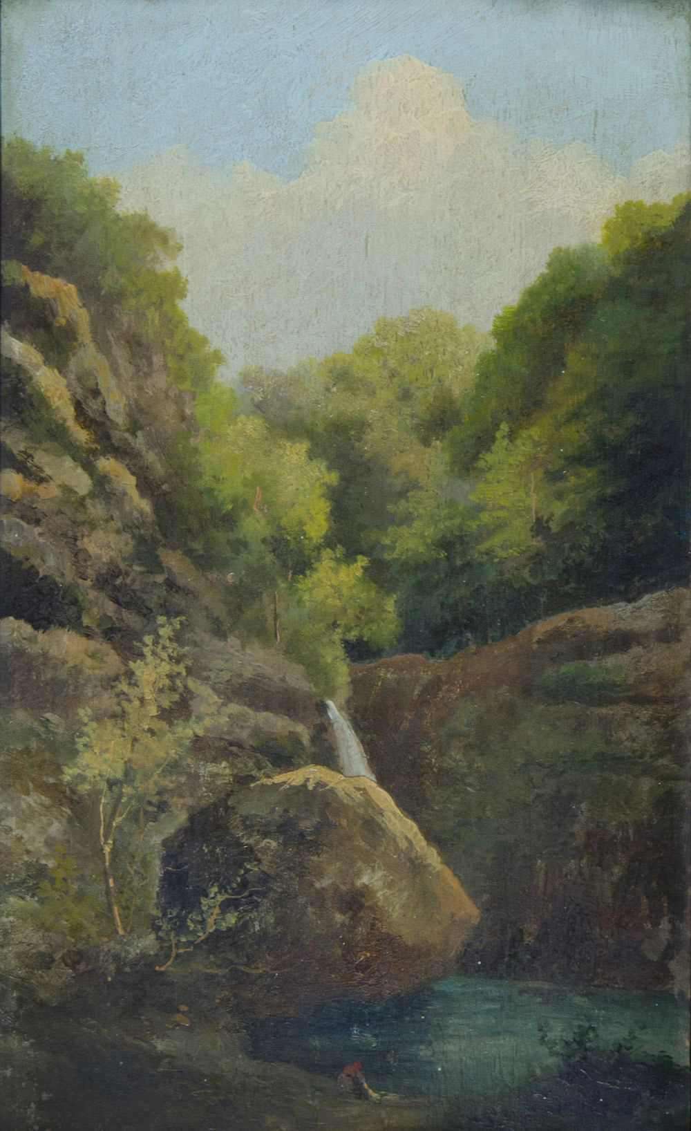 Pittore del XIX secolo Lotto di 2 oli su tavoletta raffiguranti paesaggi, cm....