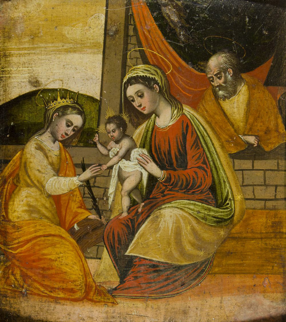 Maestro veneto-dalmata del XVI secolo "Sacra famiglia e Santa Caternia" cm....