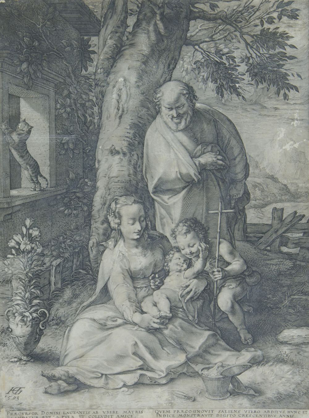 Hendrick Goltzius 1558-1616 "Scena sacra" cm. 48x35 - incisione (senza margini) Siglata b. a s. e datata 1593.