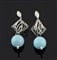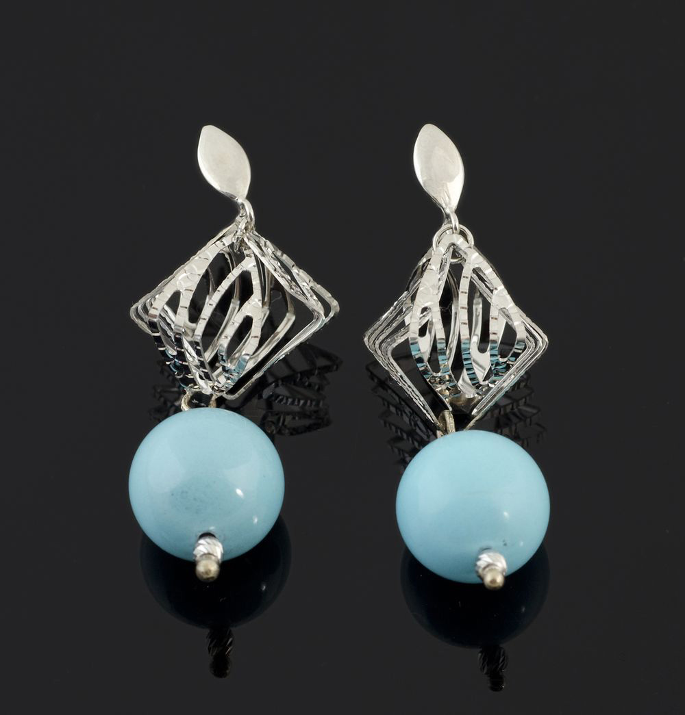 Paio di orecchini pendenti in oro bianco e sfere di pasta di turchese
