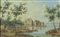 Maestro nordico del XVIII secolo "Paesaggio con figure" cm. 14x22 - olio su...