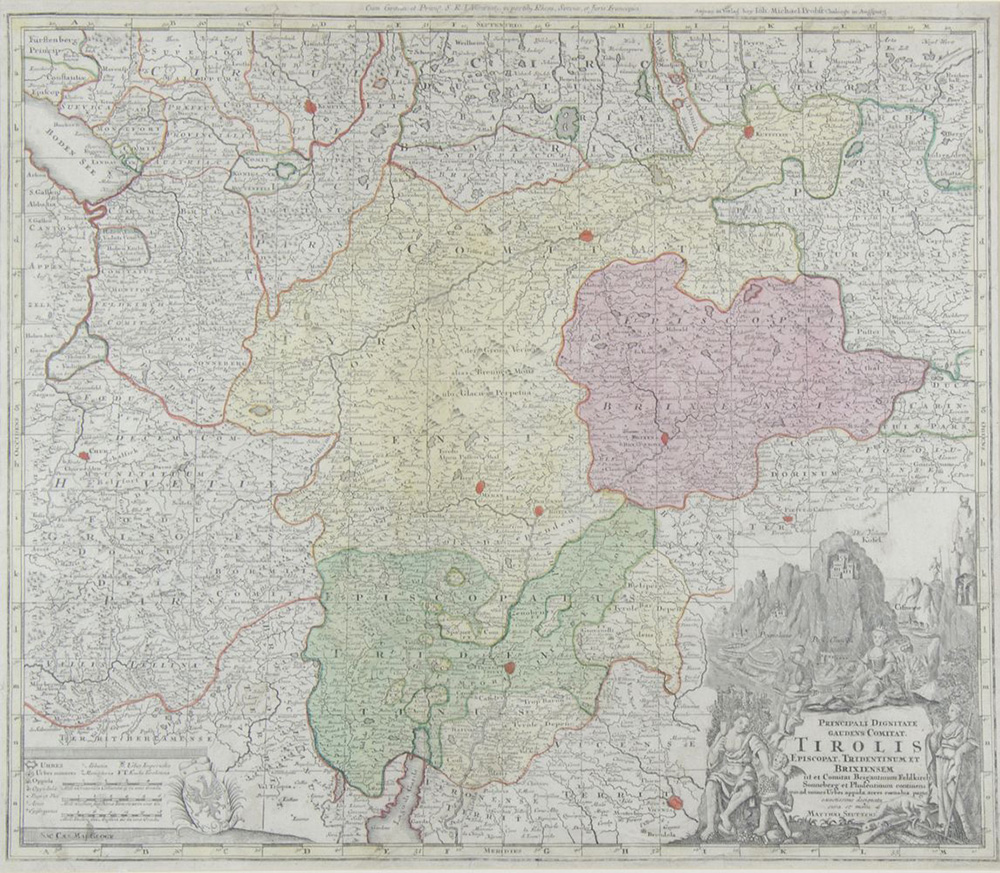 Lotto di 2 carte geografiche: a) "Tirolis" cm. 50x60 b) "Ducatus Sabaudiae" cm. 50x60