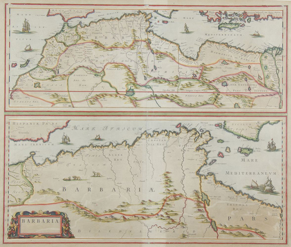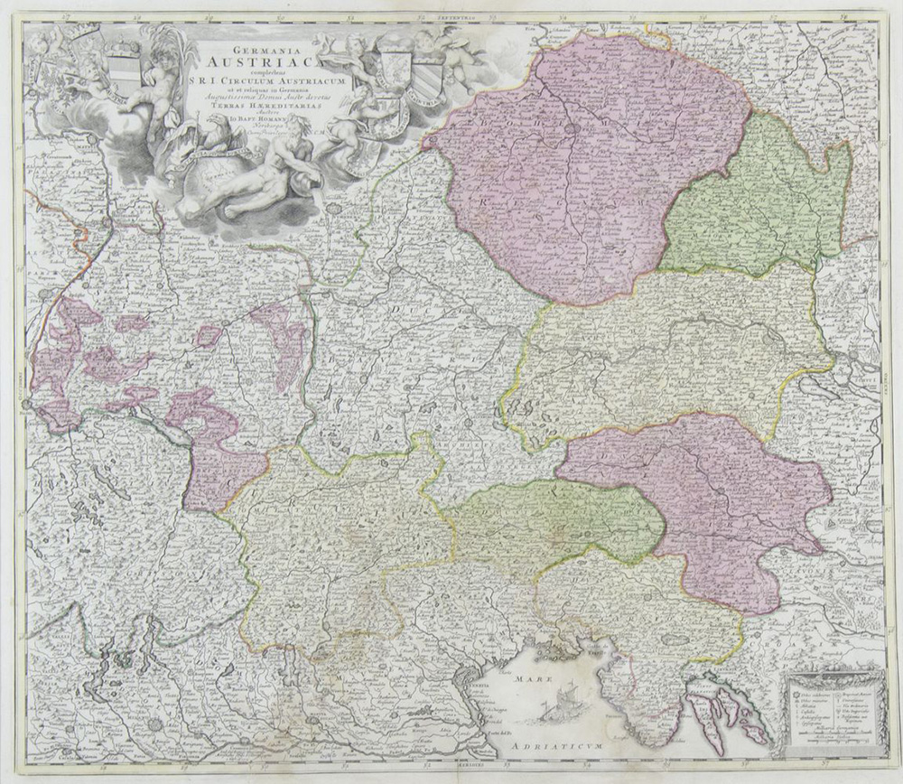 Lotto di 2 carte geografiche: a) "Germania austriaca" cm. 50x58 b) "Barbaria" cm. 55x64