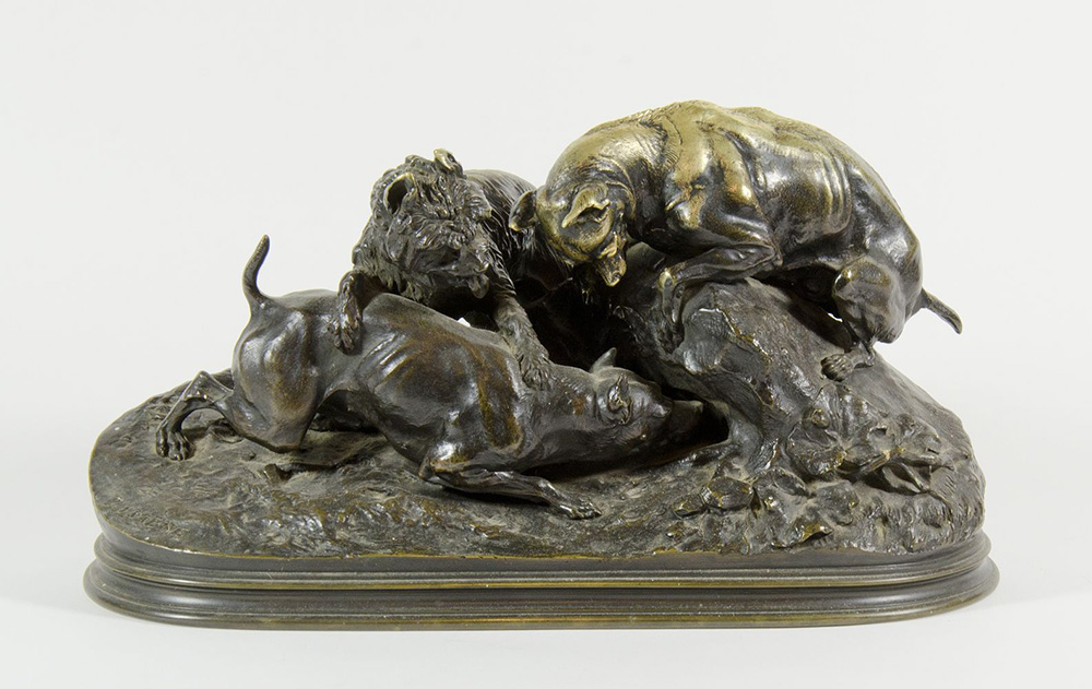 Pierre-Jules Mene 1810-1879 "Animali" lung. cm. 38 - scultura in bronzo a patina scura Firma incisa.