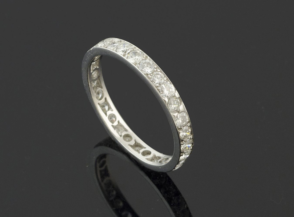Lotto 130 | Anello fedina in oro bianco eternelle con 27 diamanti taglio brillante a...