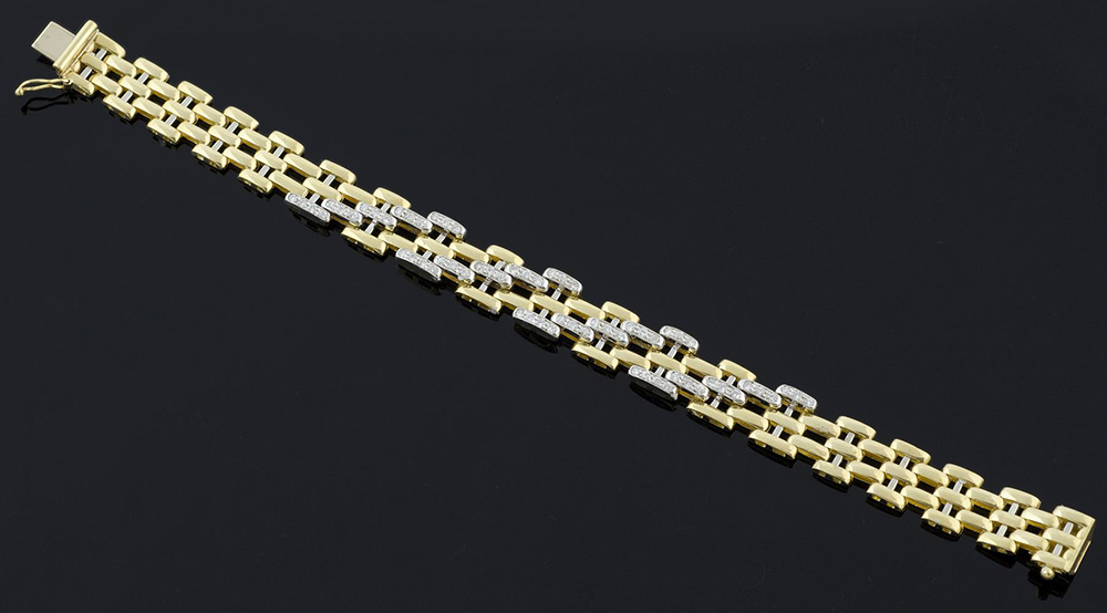 Lotto 138 | Bracciale in oro giallo con inserti di diamanti taglio brillante per ct...