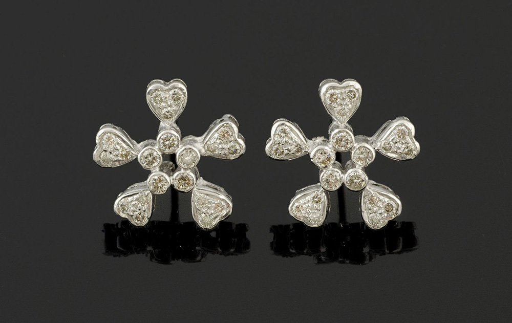 Orecchini in oro bianco a forma di stella stilizzata con diamanti taglio brillante per tot ct 1,10