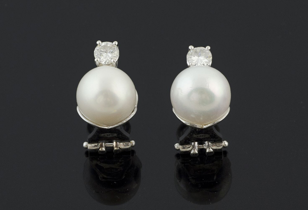 Lotto 142 | Orecchini in oro bianco a monachella con perla coltivata Giapponese Akoya e...
