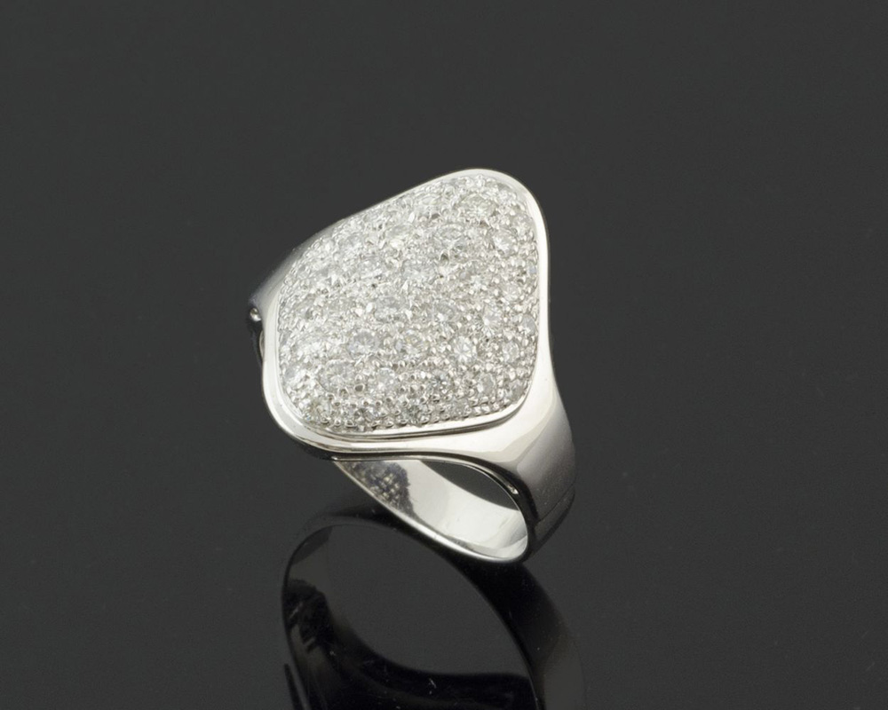 Anello in oro bianco con sommità a forma di losanga con 44 diamanti taglio a brillante a pavè