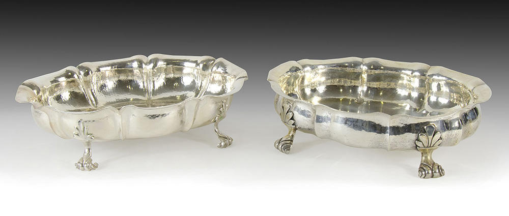 Lotto 172 | Lotto di 2 centrotavola ovali in argento poggianti su zampe ferine. Gr tot 2000.