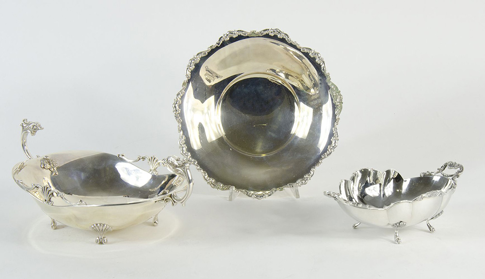 Lotto di 3 centrotavola in argento con bordi lavorati. Gr. Tot 890.
