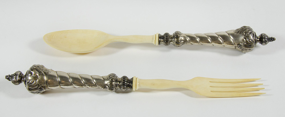Set di 2 posate in argento e avorio.