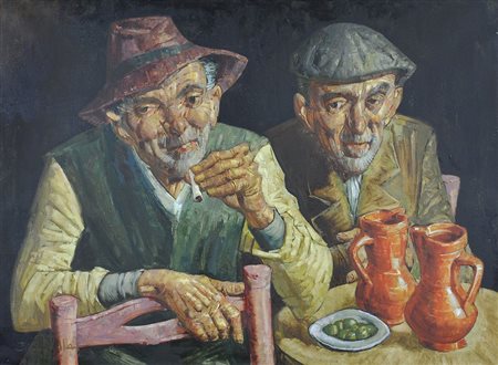 Jesus Villar 1930 "Viejos biebjendo" cm. 60x80 - olio su tela Firmato b. a s. e al retro.