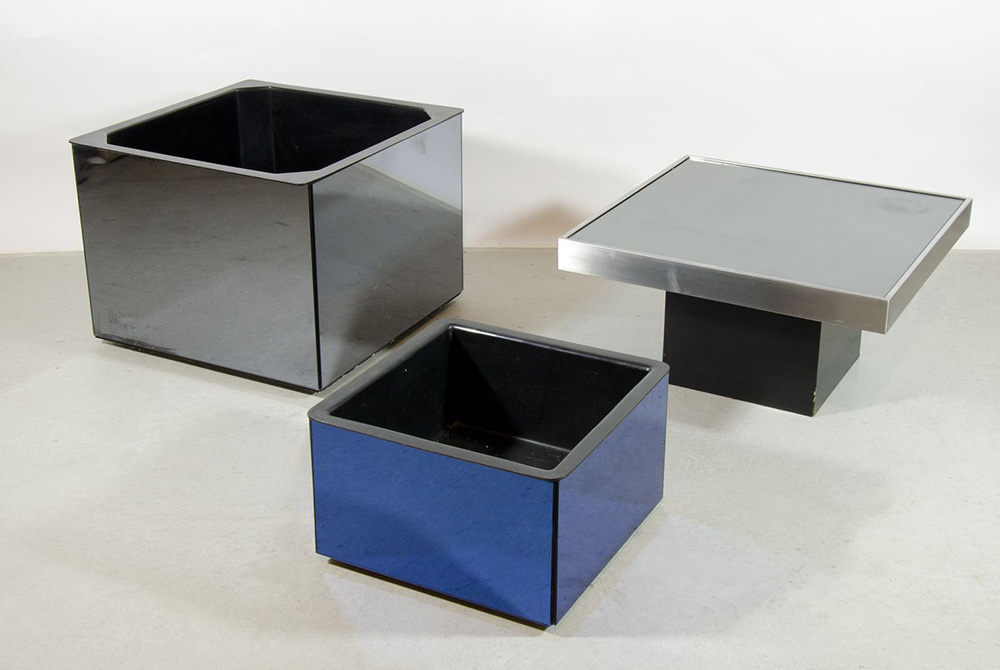 Lotto composto da 2 fioriere e tavolino basso. Anni '70.