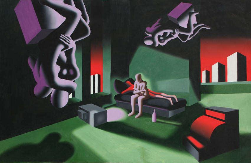 Mark KOSTABI Los Angeles 1960 The green room, 1988 olio su tela oil on canvas cm 137×213 Firma, data ‘Kostabi, 1988’ (in basso al centro) Firma, titolo, data ‘Kostabi, The green room, 1988’ (al retro) Signed, dated ‘Kostabi, 1988’ (lower centre) Signed, titled, dated ‘Kostabi, The green room, 1988’ (on the reverse)