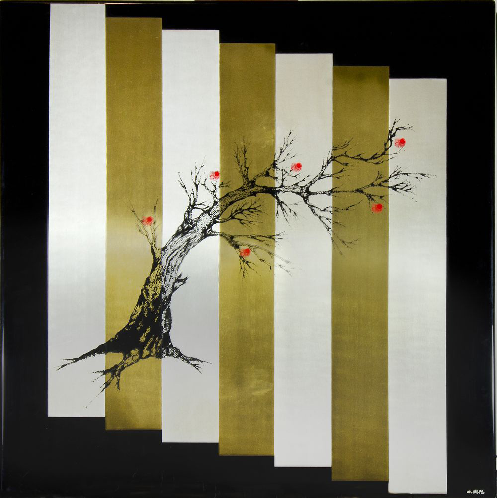 Studio EF: lotto composto da lampada da tavolo e pannello da parete con applicazioni. Disegno di O. Ciullini, anni '70.