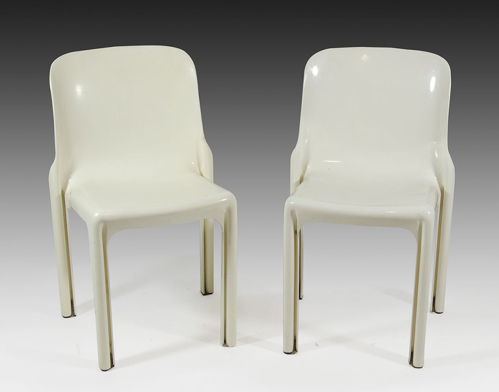 Artemide: lotto di 4 sedie modello Selene, disegno di V. Magistretti 1969.