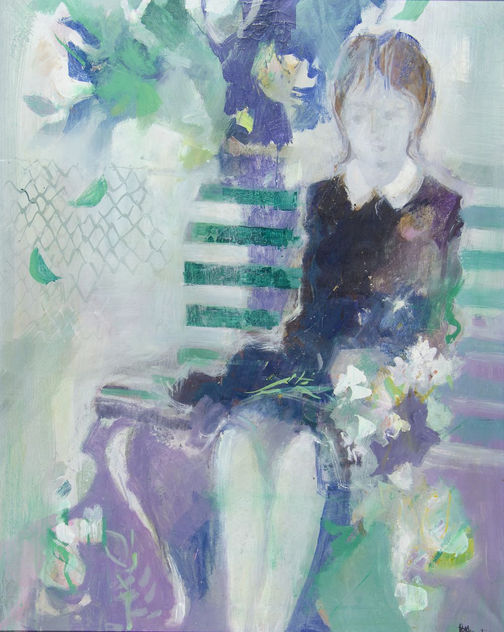 Pittore del XX secolo "Ragazza al parco" cm. 100x80 - oloio su tela Firmato...