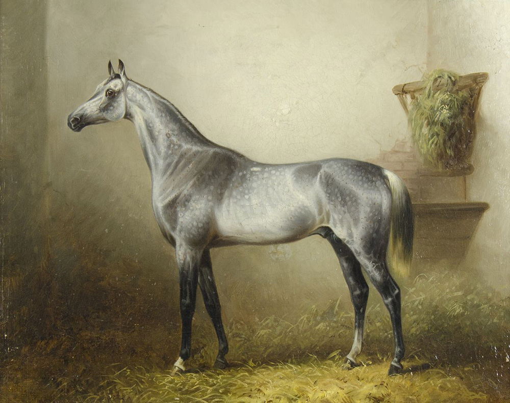 Pittore austriaco del XIX secolo "Cavallo in posa" cm. 46x54 - olio su tela