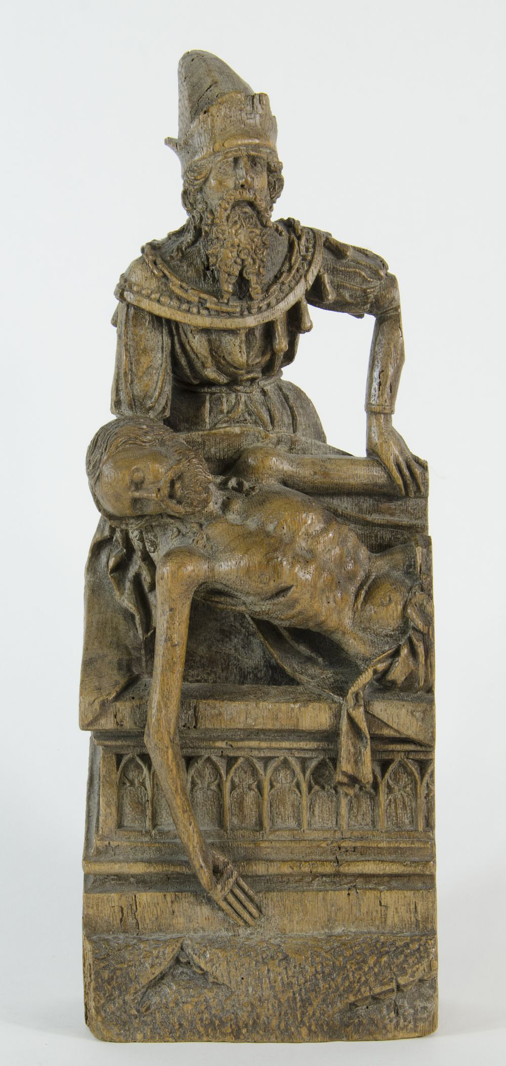 Scultura in legno scolpito raffigurante Santo. H. cm. 40.