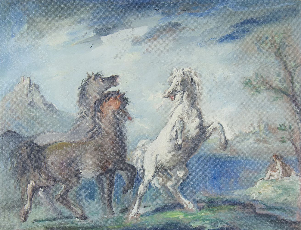 Lotto 245 | Bruno Martini 1911-1979 "Cavalli" cm. 57x73 - olio su faesite Firmato b. a d.