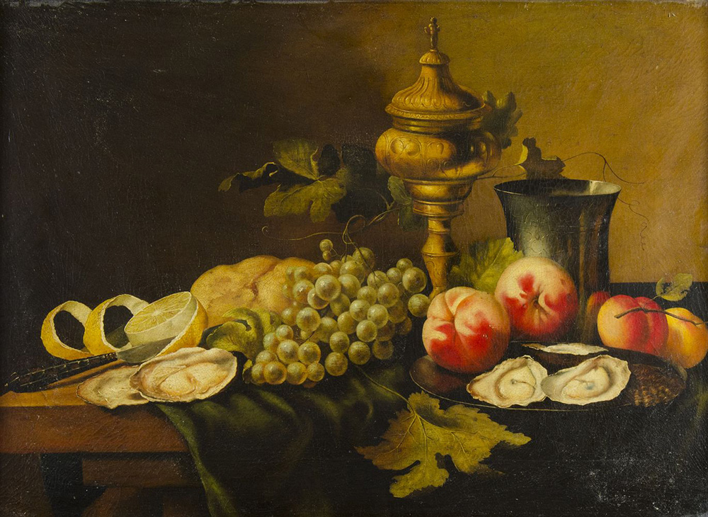 Sergio Alesandro Ughi Ferrara 1951 copia da Hendrick Avercamp "Natura morta con frutta" (1994) cm. 50x70 - olio su tela Dichiarazione di autenticità della "Le musee imaginaire" Milano.