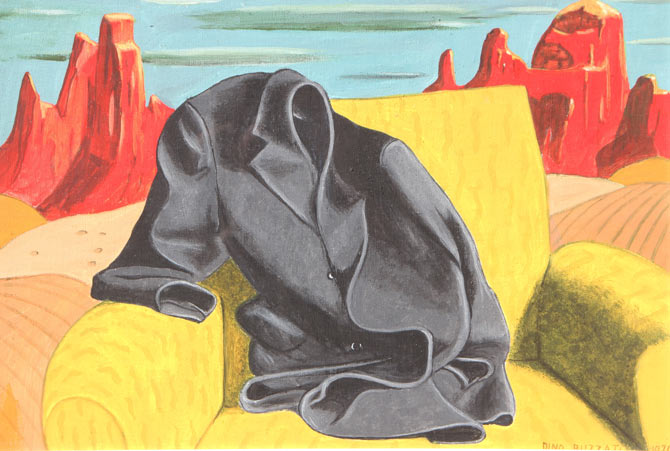 Dino BUZZATI San Pellegrino di Belluno 1906 - Milano 1972 Senza titolo, 1971 olio su tela oil on canvas cm 40×60 Firma, data ‘Dino Buzzati, 1971’ (in basso a destra) Dedica e dichiarazione di autenticità dell’artista (al retro) Signed, dated ‘Dino Buzzati, 1971’ (lower right) Dedication and declaration of authenticity by the artist