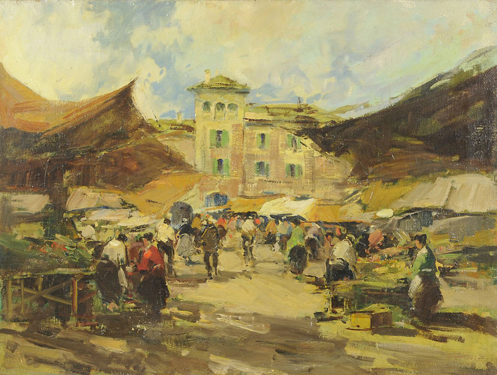 Pittore del '900 "Al mercato" cm. 60x80 - olio su tela