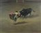 Lajos Markos 1917-1993 "Prima dell'infilzata" cm. 40x50 - olio su faesite Firmato b. a d. e datato 1964 Madrid.