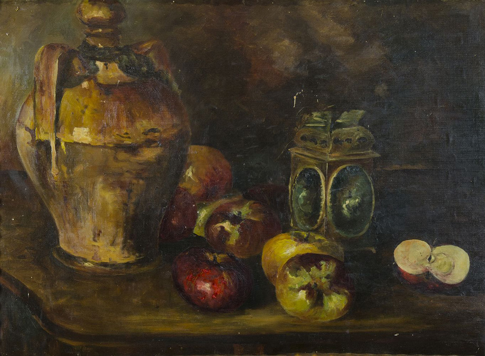 Pittore primi '900 "Natura morta e oggetti" cm. 50x70 - olio su cartone telato