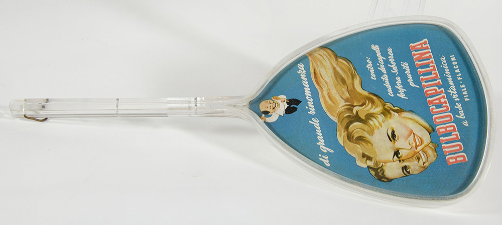 Specchio "Bulbocapillina" da parrucchiere con struttura in materiale plastico trasparente.