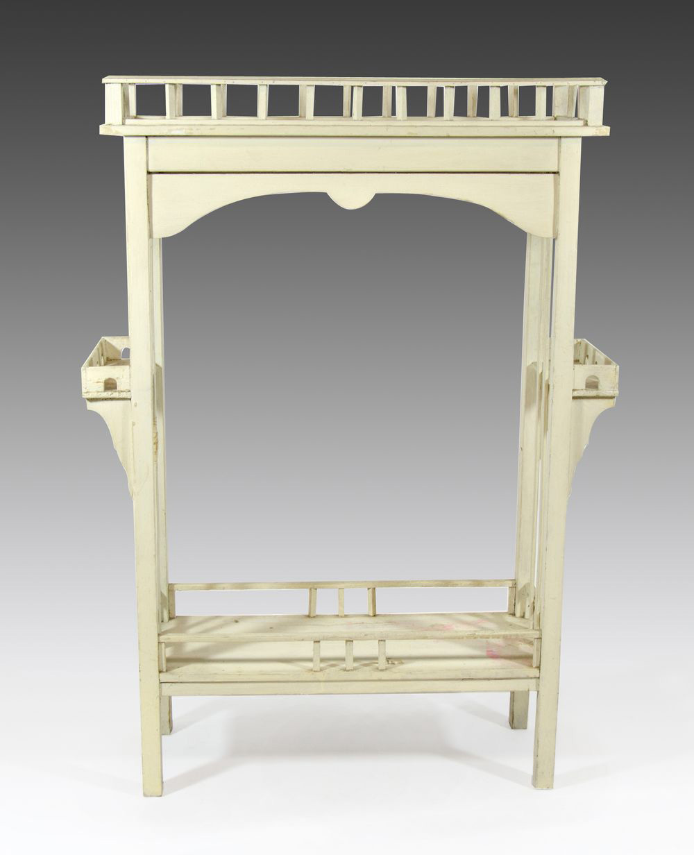 Etajere in legno dipinto bianco a 2 ripiani con listelli laterali. Epoca Liberty.