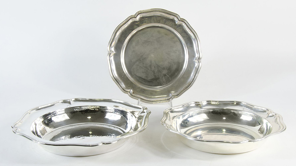 Lotto 286 | Lotto di 3 contenitori in argento con bordo lavorato. Gr. Tot 2100.
