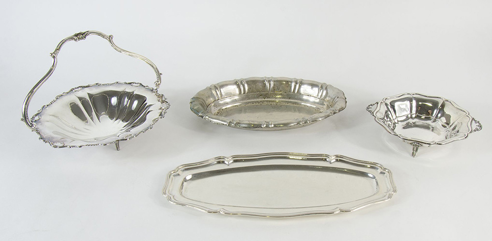 Lotto di 3 cestini e piatto in argento. Gr. Tot 890.