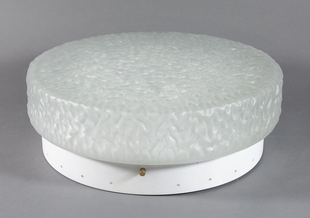 Lotto 300 | Venini: plafoniera rotonda in vetro opaco lavorato. Diam. cm. 40.
