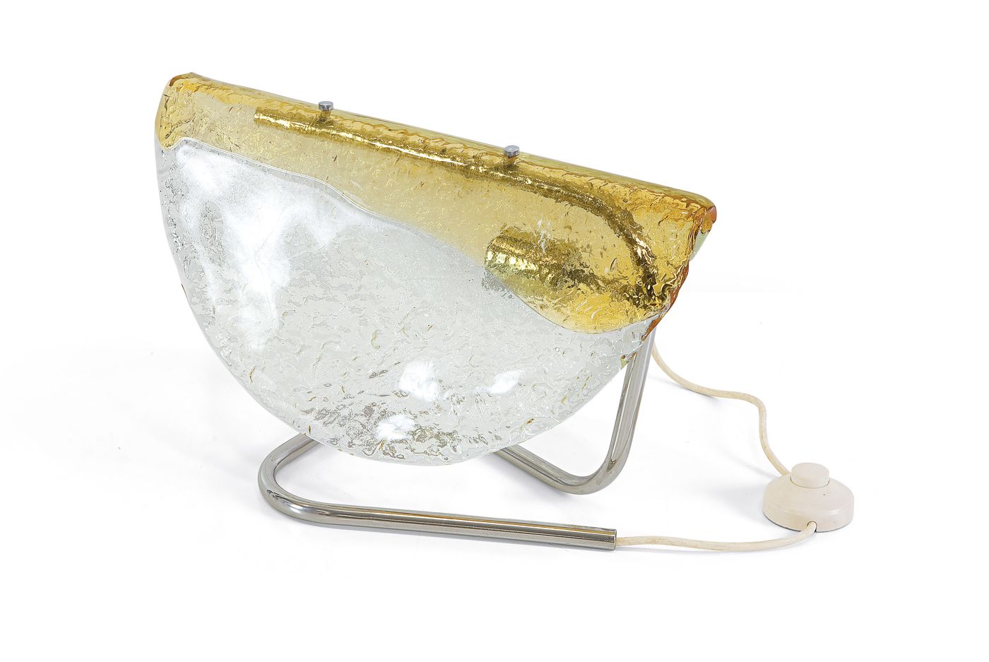 LAMPADA - Lampada da tavolo. Supporto in tubo metallico cromato, diffusore in vetro di Murano. Mazzega (?) cm. 35